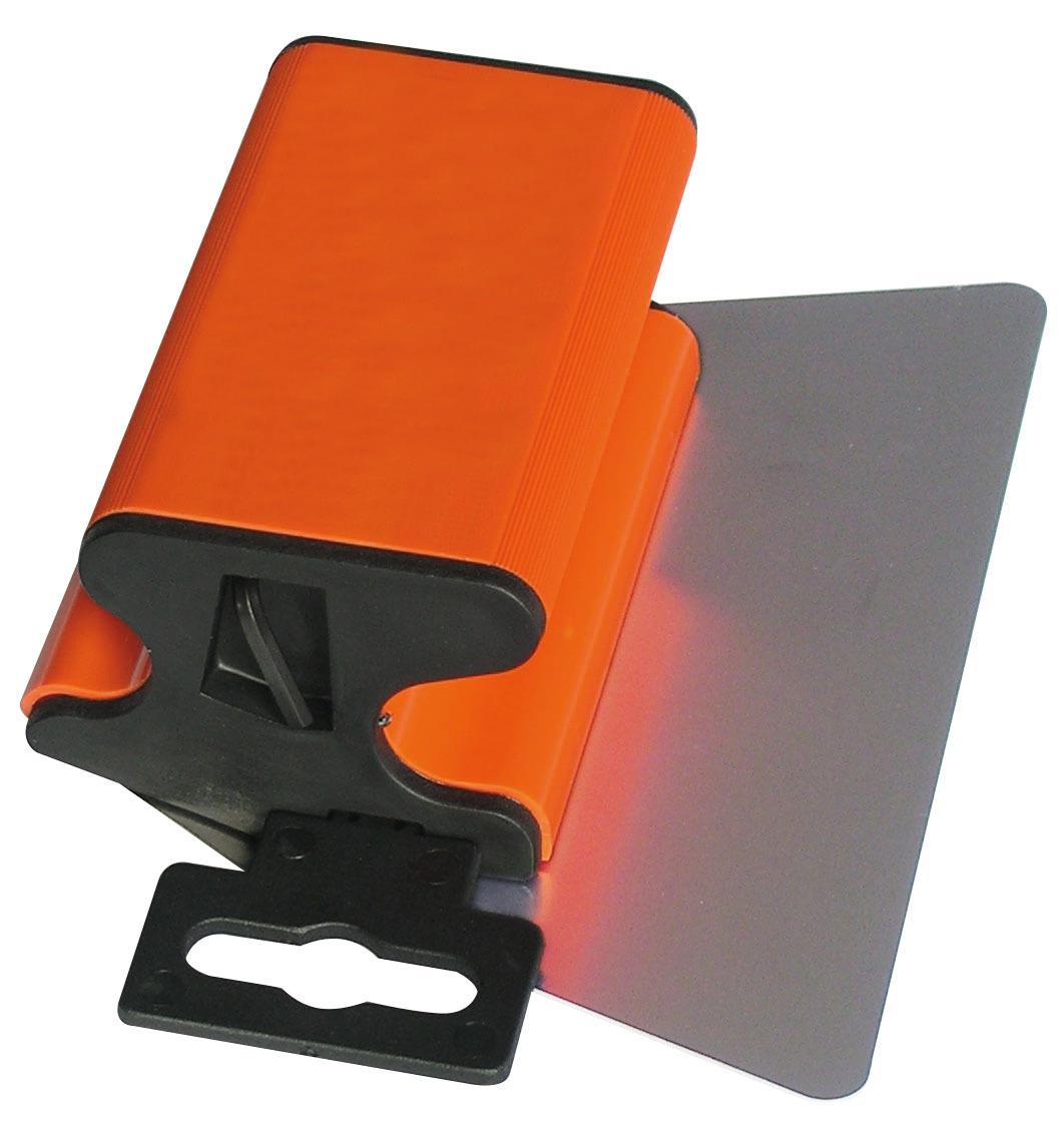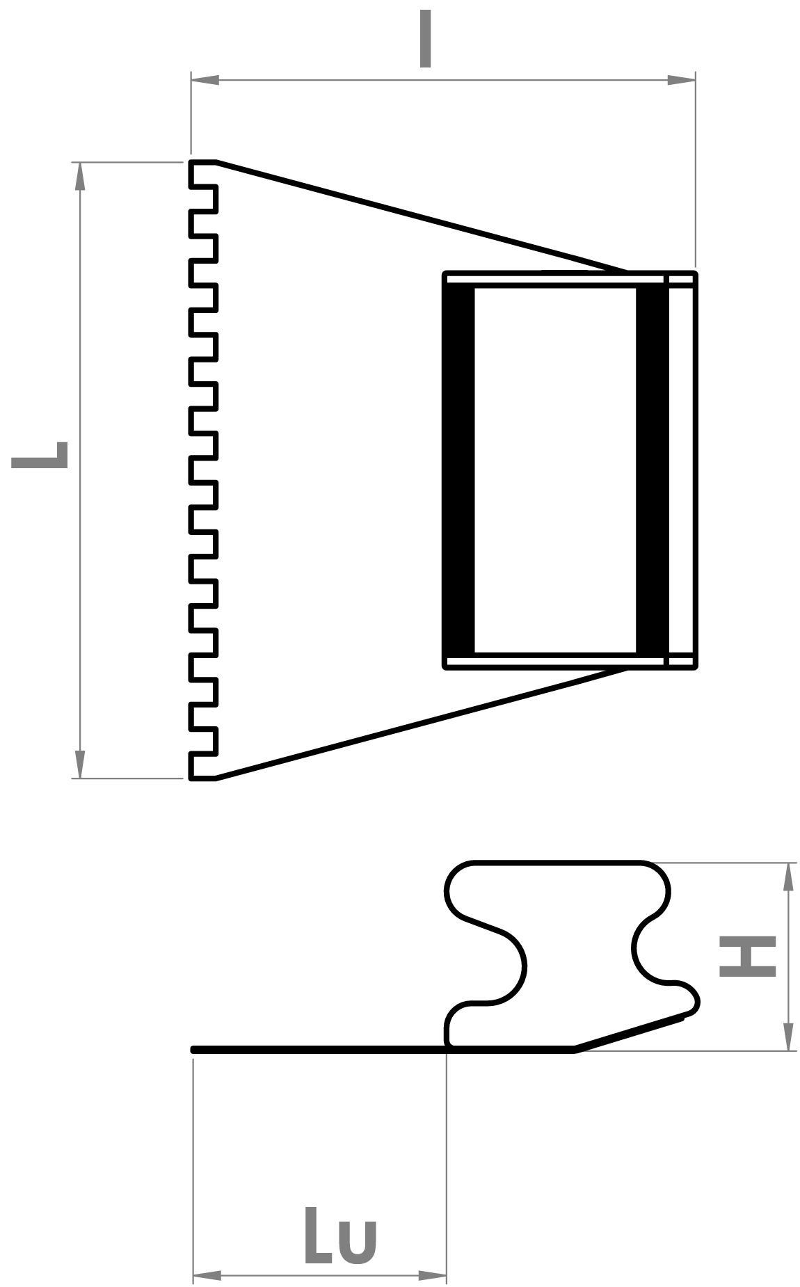 Lâmina inox dentada 600 mm, espessura 0,6 mm. Ultrapassagem do cabo (Lu): 60 mm.