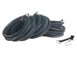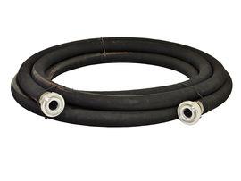 A mangueira de transporte PFT RONDO air DN45 é fabricada em borracha de três camadas, com 20 metros de comprimento e acoplamento tipo C50 integrado.